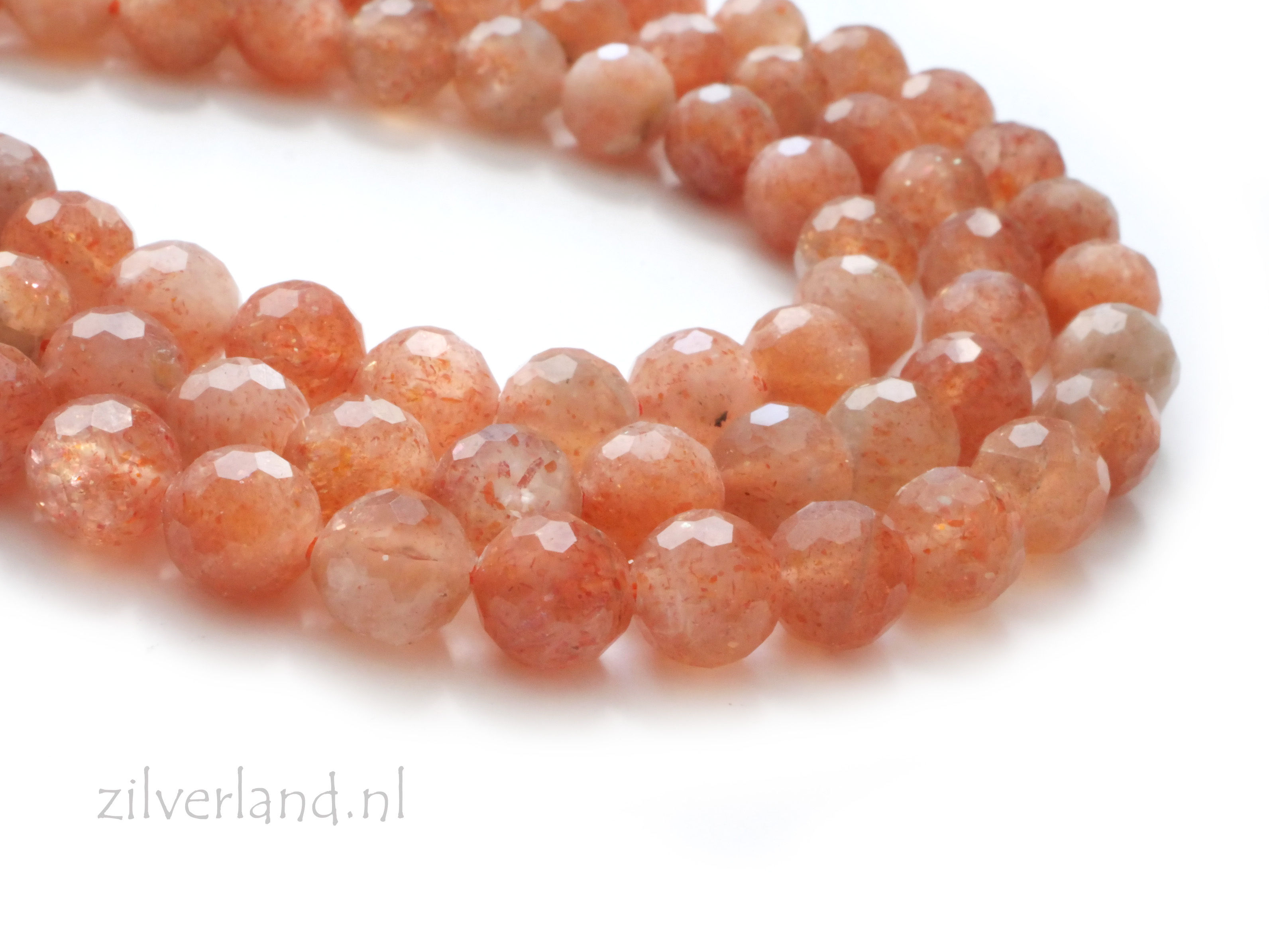 De kralen worden geleverd op streng. Het 6 mm formaat maakt deze Zonnesteen kralen zeer geschikt voor verfijnde armbanden, kettingen en oorbellen. Door de facetafwerking reflecteren de kralen het licht krachtig en laten ze zich goed combineren met andere edelstenen en metalen onderdelen.