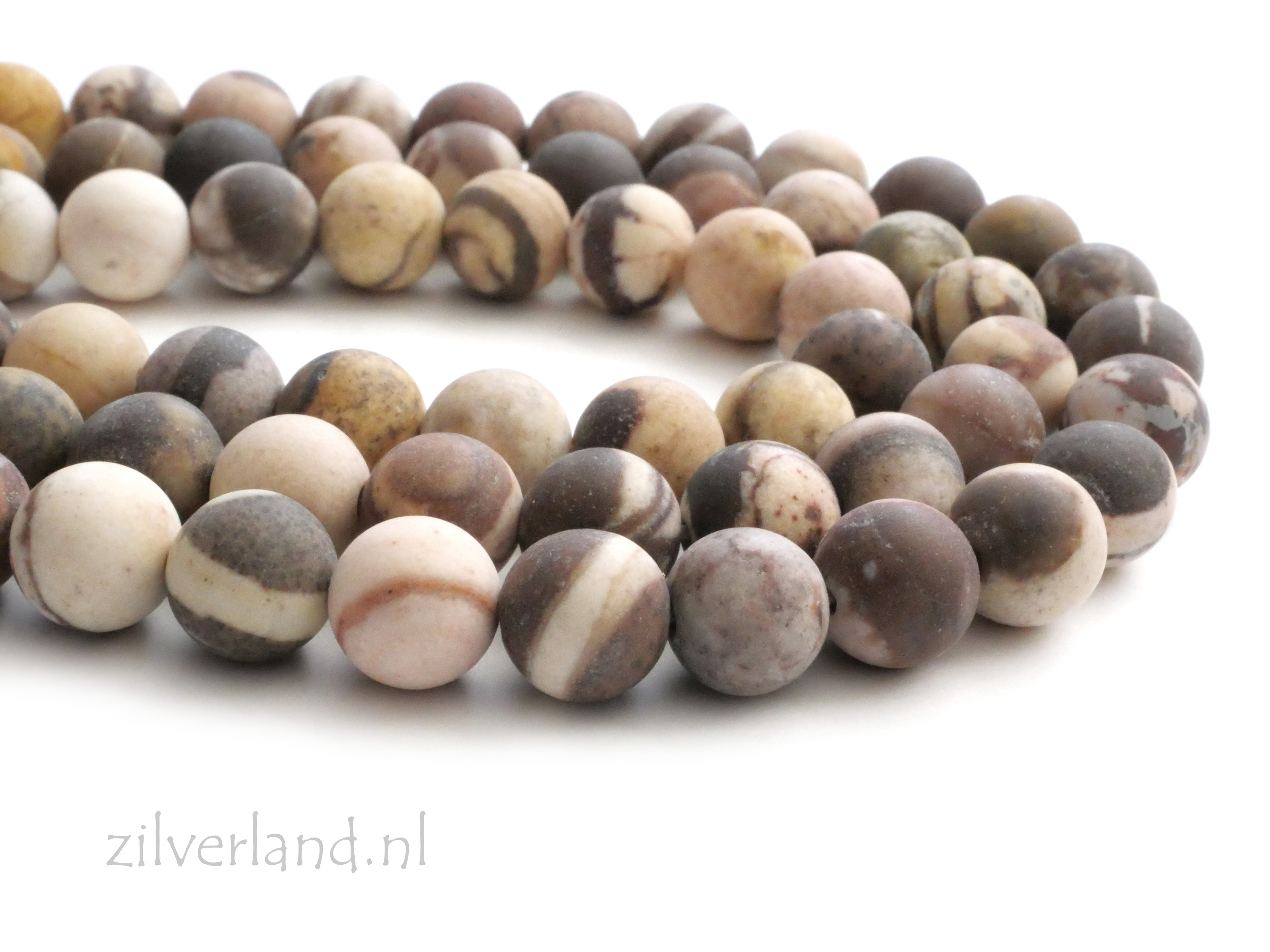Natuurlijke matte Australische Zebra Jaspis edelstenen kralen van 8mm. Lengte van de streng is 38cm.